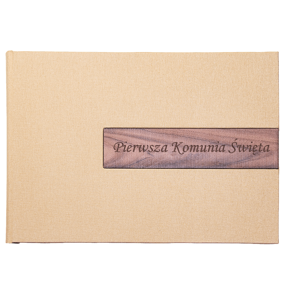 Album na zdjęcia komunijne z kawałkiem drewna wtopionym w okładkę – Linia albumów na zdjęcia wklejane Wood