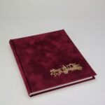 Album z naklejonymi rameczkami ze złotą lamówką na 24 zdjęcia,okładka wykonana w bordowym welurze ze złoconym napisem “Pamiątka Chrztu Św.” (Wyprzedaż)