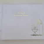 Album na zdjęcia wklejane, formatu 25×25/48 stron. Kartki koloru kremowego z naklejonym pergaminem chroniącym zdjęcia przed uszkodzeniem, z pierwszą stroną opisową dotycząca pierwszych chwil z życia dziecka. Okładka albumu wykonana w skórze galanteryjnej widocznej na zdjęciu. Możliwość wykonania indywidualnego napisu lub grafiki na okładce. (Wyprzedaż)