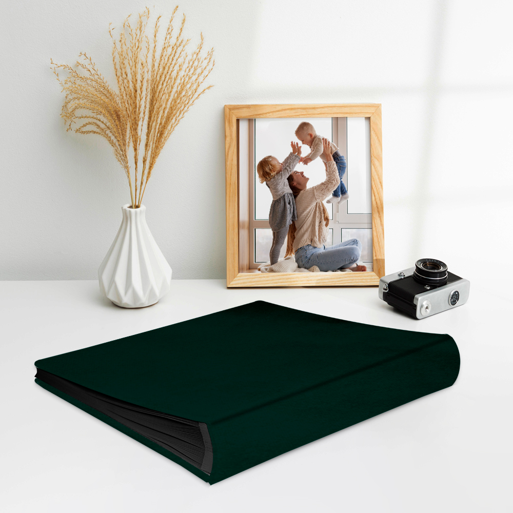 Album do wklejania zdjęć, klasyczny – Aksamit: butelkowa zieleń. Idealny na zdjęcia w popularnych formatach 10×15, 15×21 oraz wiele więcej np. Instax i fotobudki.