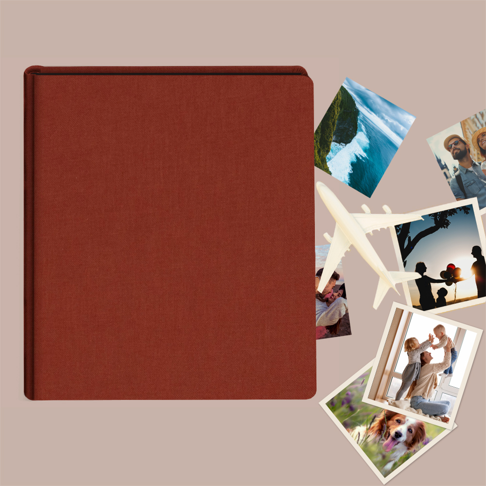 Album do wklejania zdjęć, klasyczny – Płótno: ceglany. Idealny na zdjęcia w popularnych formatach 10×15, 15×21 oraz wiele więcej np. Instax i fotobudki.