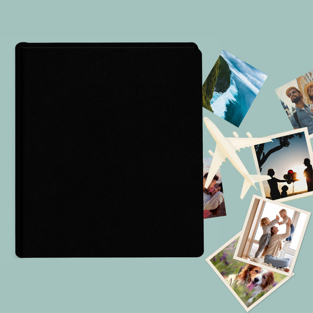 Album do wklejania zdjęć, klasyczny – Płótno: głęboka czerń. Idealny na zdjęcia w popularnych formatach 10×15, 15×21 oraz wiele więcej np. Instax i fotobudki.