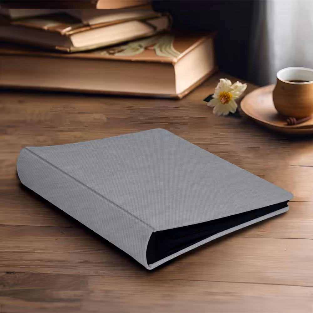 Twój Album do wklejania zdjęć, popielaty len wykonamy z dowolnego materiału dostępnego w naszej ofercie, o wybranym przez Ciebie kolorze. W pełni ręcznie wykonany Album Tradycyjny na zdjęcia wklejane, na papierowych kartach o różnej kolorystyce pomieści wiele zdjęć.