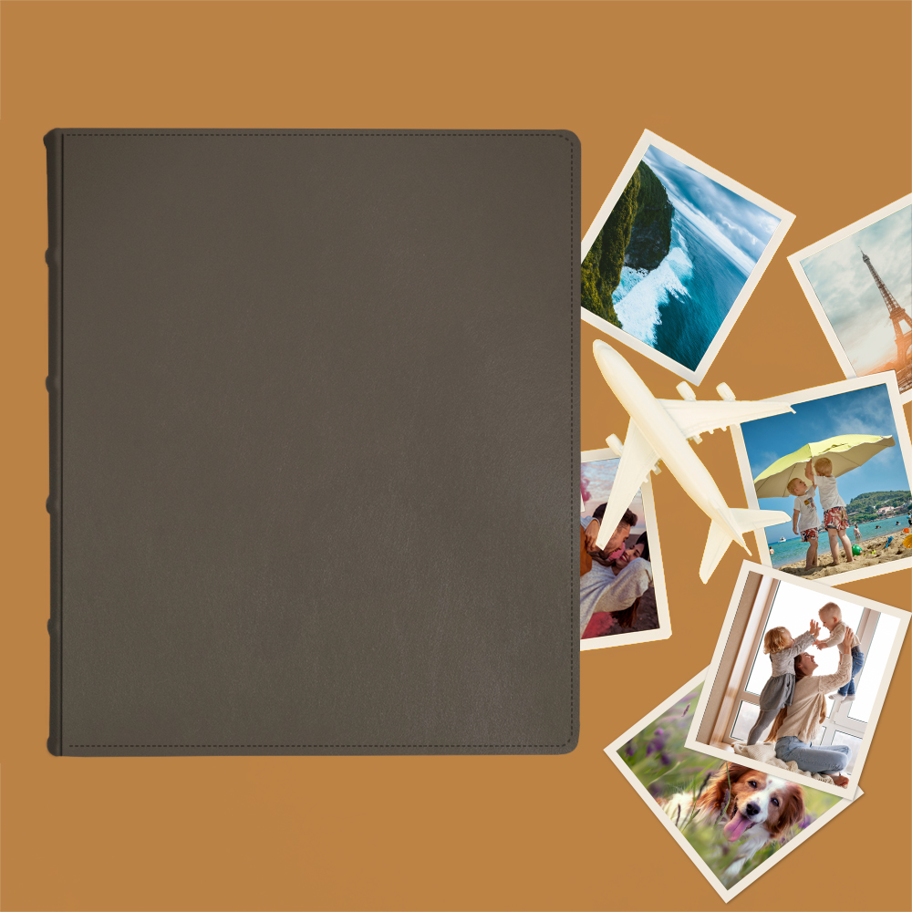 Album do wklejania zdjęć, klasyczny – skóra galanteryjna: brązowy ziemisty. Idealny na zdjęcia w popularnych formatach 10×15, 15×21 oraz wiele więcej np. Instax i fotobudki.
