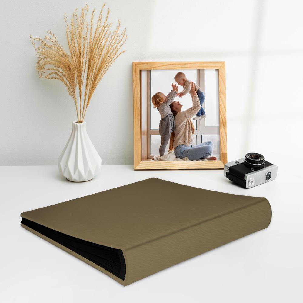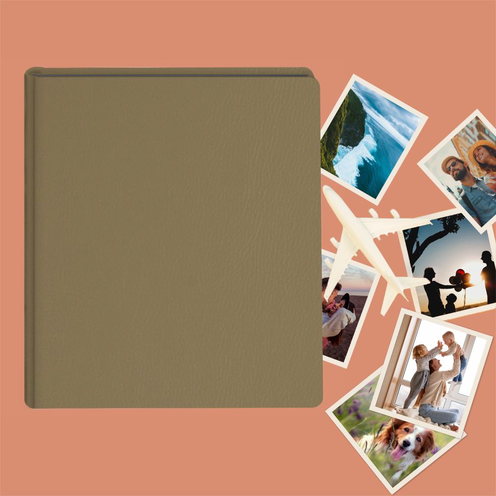 Album do wklejania zdjęć, klasyczny – skóra galanteryjna: Ciemny beż. Idealny na zdjęcia w popularnych formatach 10×15, 15×21 oraz wiele więcej np. Instax i fotobudki.