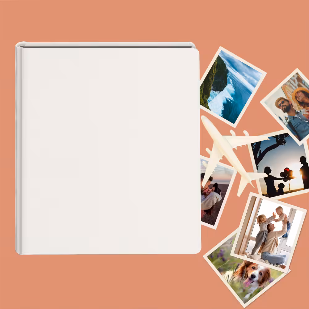 Album do wklejania zdjęć, klasyczny – skóra galanteryjna: Kremowa biel. Idealny na zdjęcia w popularnych formatach 10×15, 15×21 oraz wiele więcej np. Instax i fotobudki.