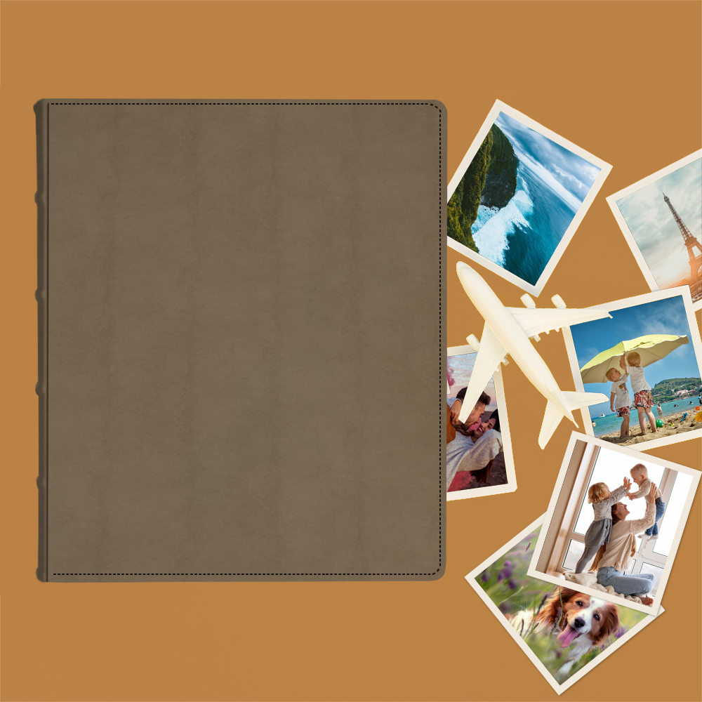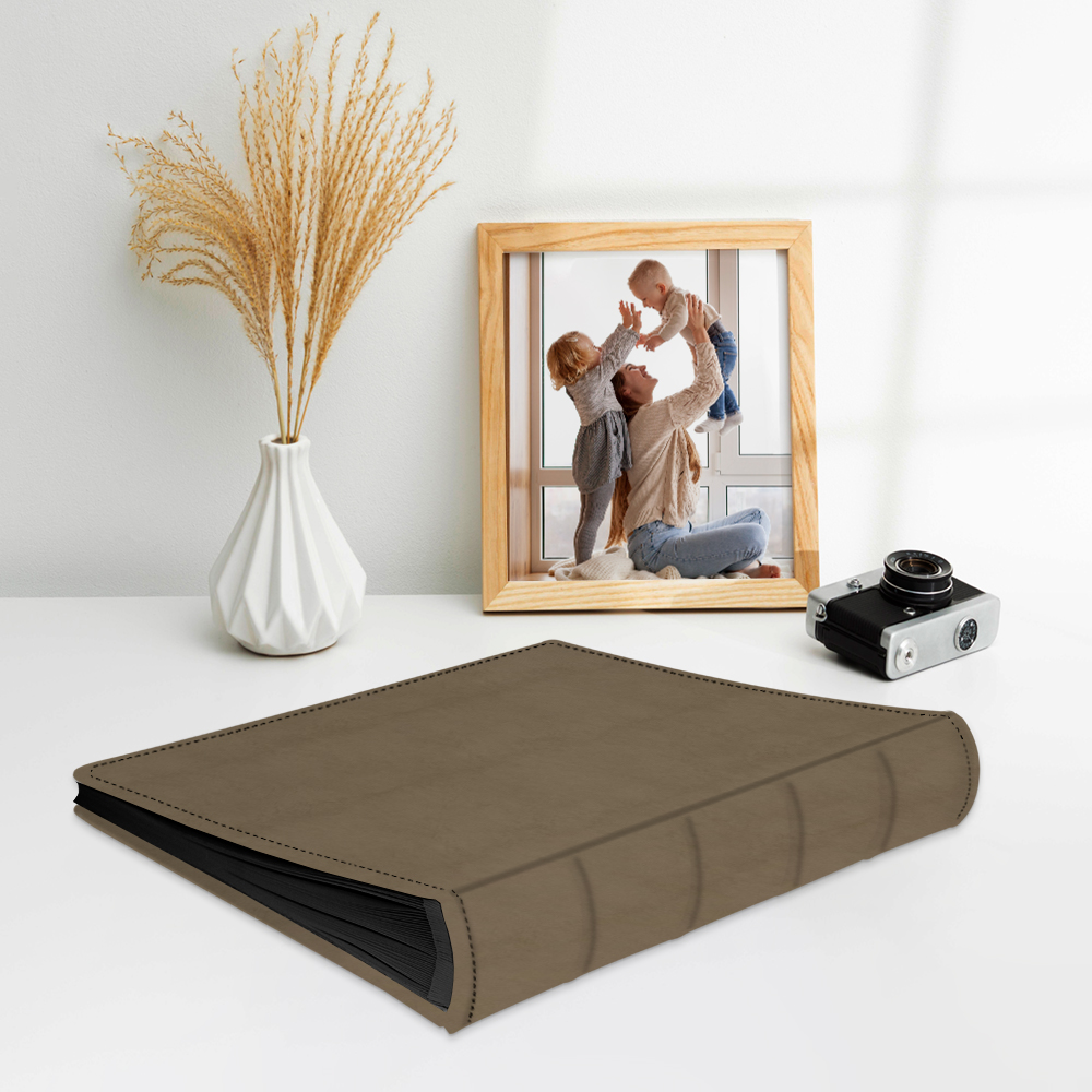 Album do wklejania zdjęć, klasyczny – skóra galanteryjna: Matowy brąz. Idealny na zdjęcia w popularnych formatach 10×15, 15×21 oraz wiele więcej np. Instax i fotobudki.