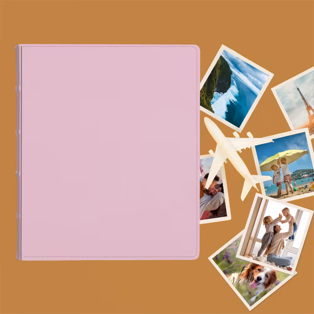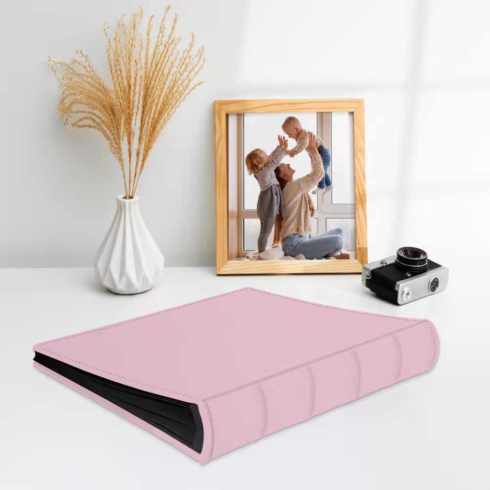 Album do wklejania zdjęć, klasyczny – skóra galanteryjna: pastelowy róż. Idealny na zdjęcia w popularnych formatach 10×15, 15×21 oraz wiele więcej np. Instax i fotobudki.