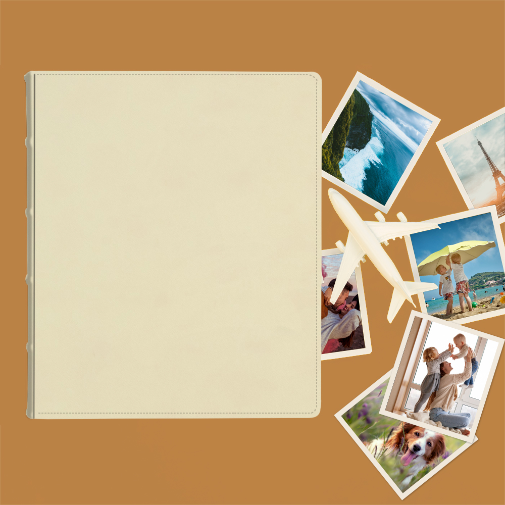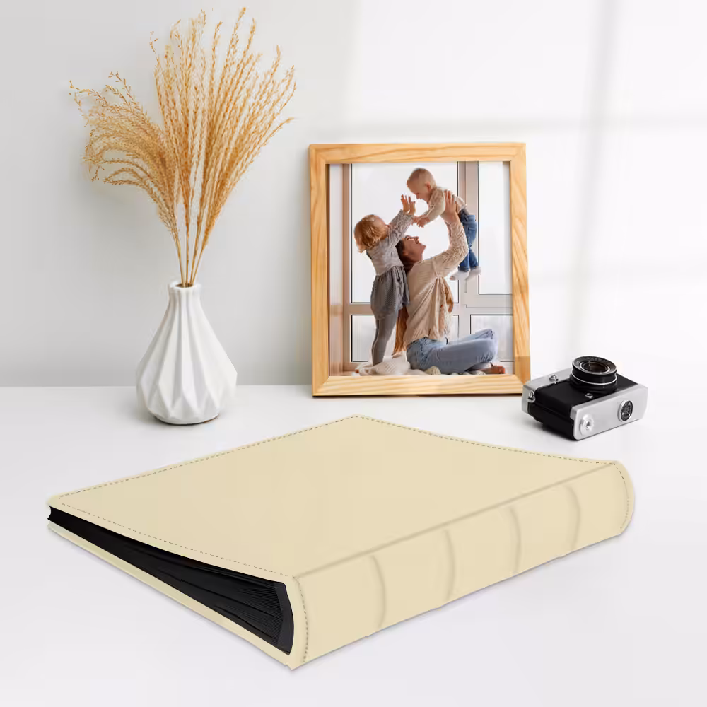 Album do wklejania zdjęć, klasyczny – skóra galanteryjna: Pastelowy żółty. Idealny na zdjęcia w popularnych formatach 10×15, 15×21 oraz wiele więcej np. Instax i fotobudki.