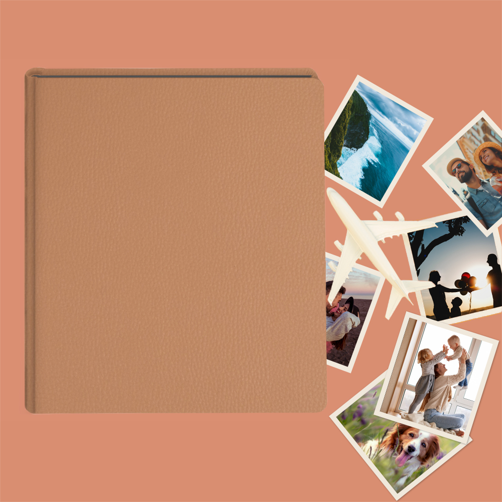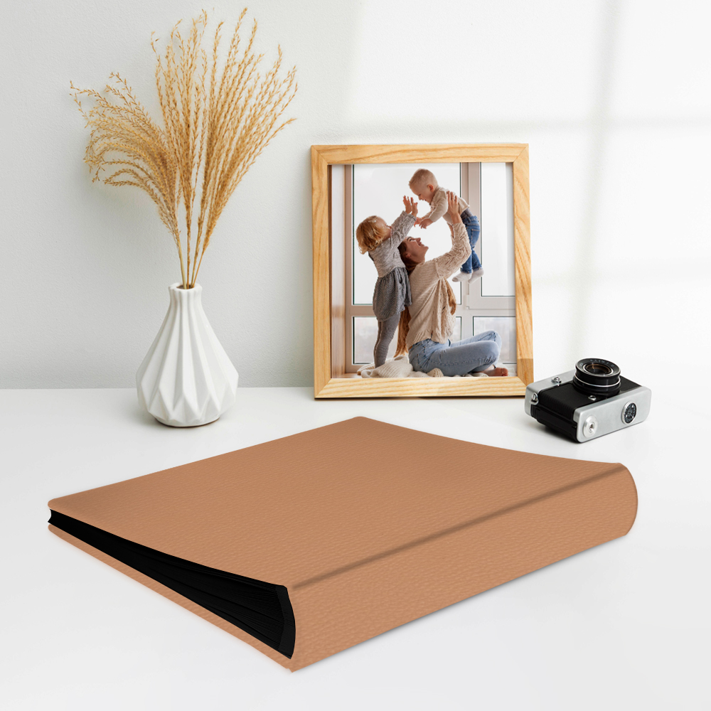 Album do wklejania zdjęć, klasyczny – skóra galanteryjna: subtelny jasnobrązowy. Idealny na zdjęcia w popularnych formatach 10×15, 15×21 oraz wiele więcej np. Instax i fotobudki.