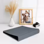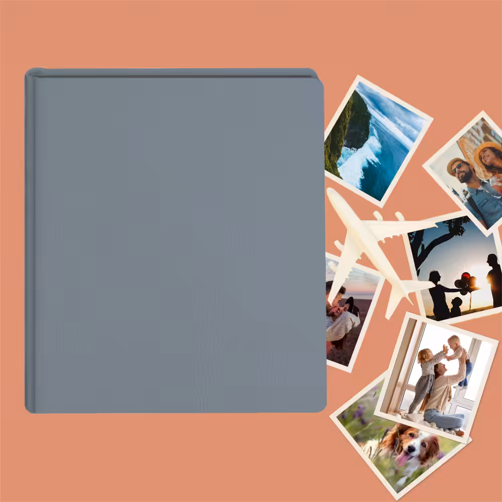 Album do wklejania zdjęć, klasyczny – skóra galanteryjna: Szary błękitny. Idealny na zdjęcia w popularnych formatach 10×15, 15×21 oraz wiele więcej np. Instax i fotobudki.