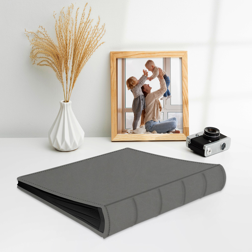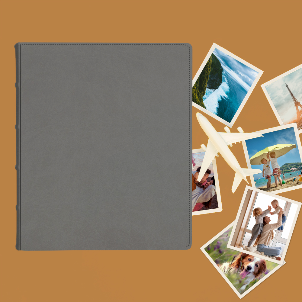 Album do wklejania zdjęć, klasyczny – skóra galanteryjna: szary minimalistyczny. Idealny na zdjęcia w popularnych formatach 10×15, 15×21 oraz wiele więcej np. Instax i fotobudki.