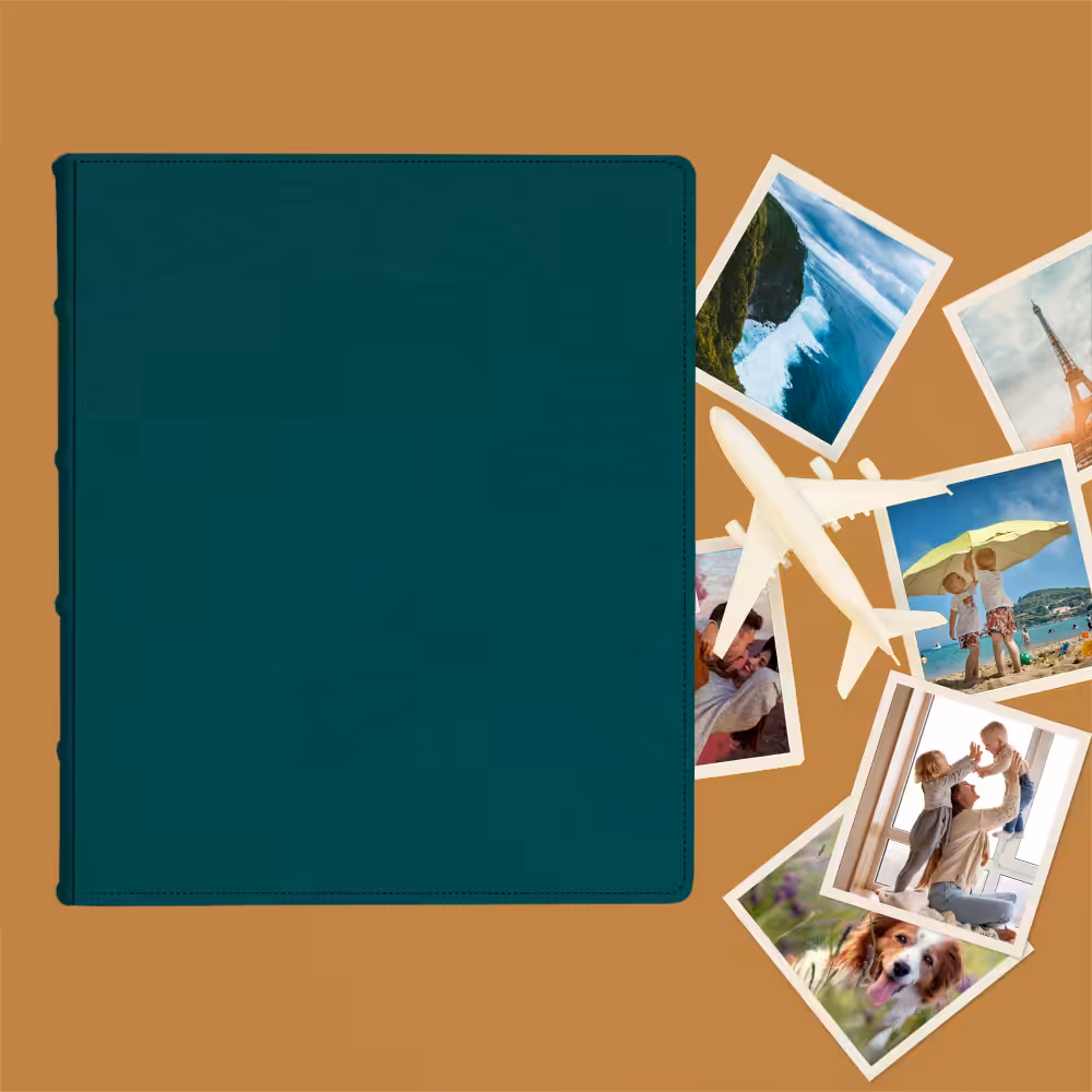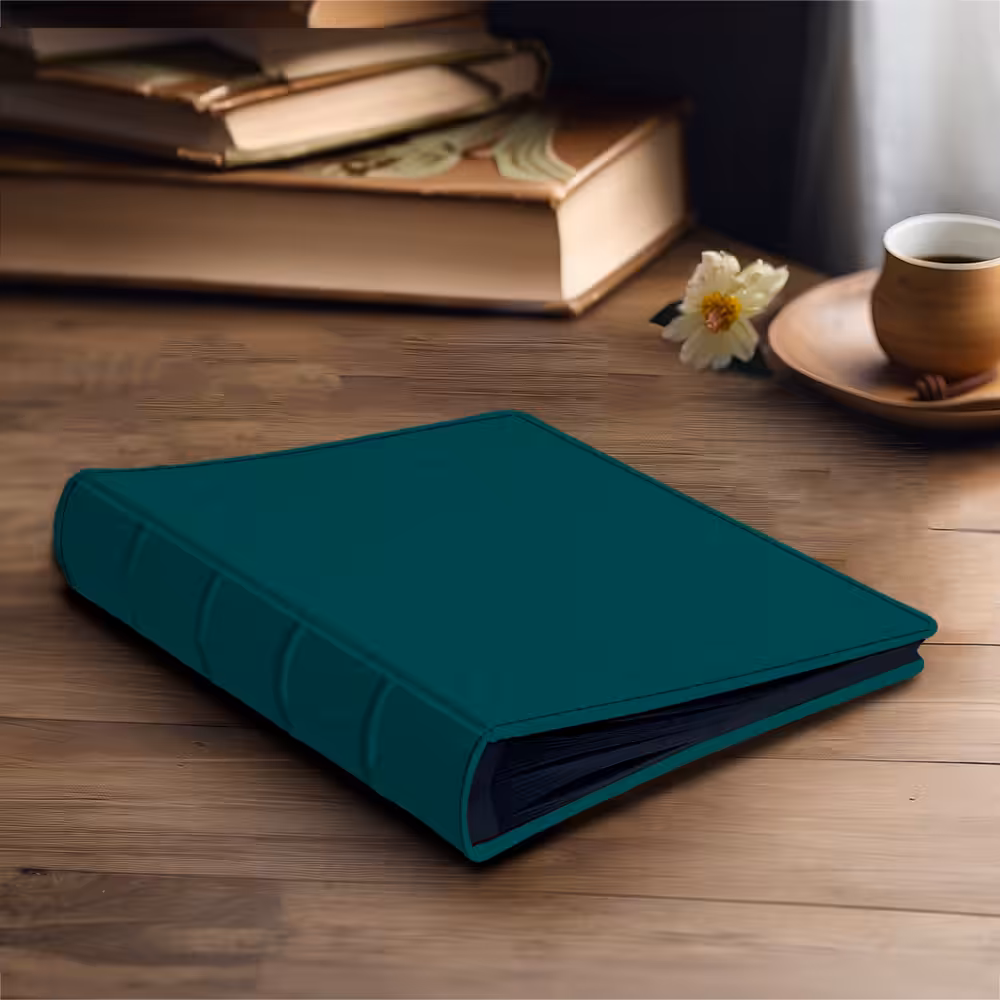 Twój Album do wklejania zdjęć, Turkusowy, nowoczesny wykonamy z dowolnego materiału dostępnego w naszej ofercie, o wybranym przez Ciebie kolorze. W pełni ręcznie wykonany Album Tradycyjny na zdjęcia wklejane, na papierowych kartach o różnej kolorystyce pomieści wiele zdjęć.