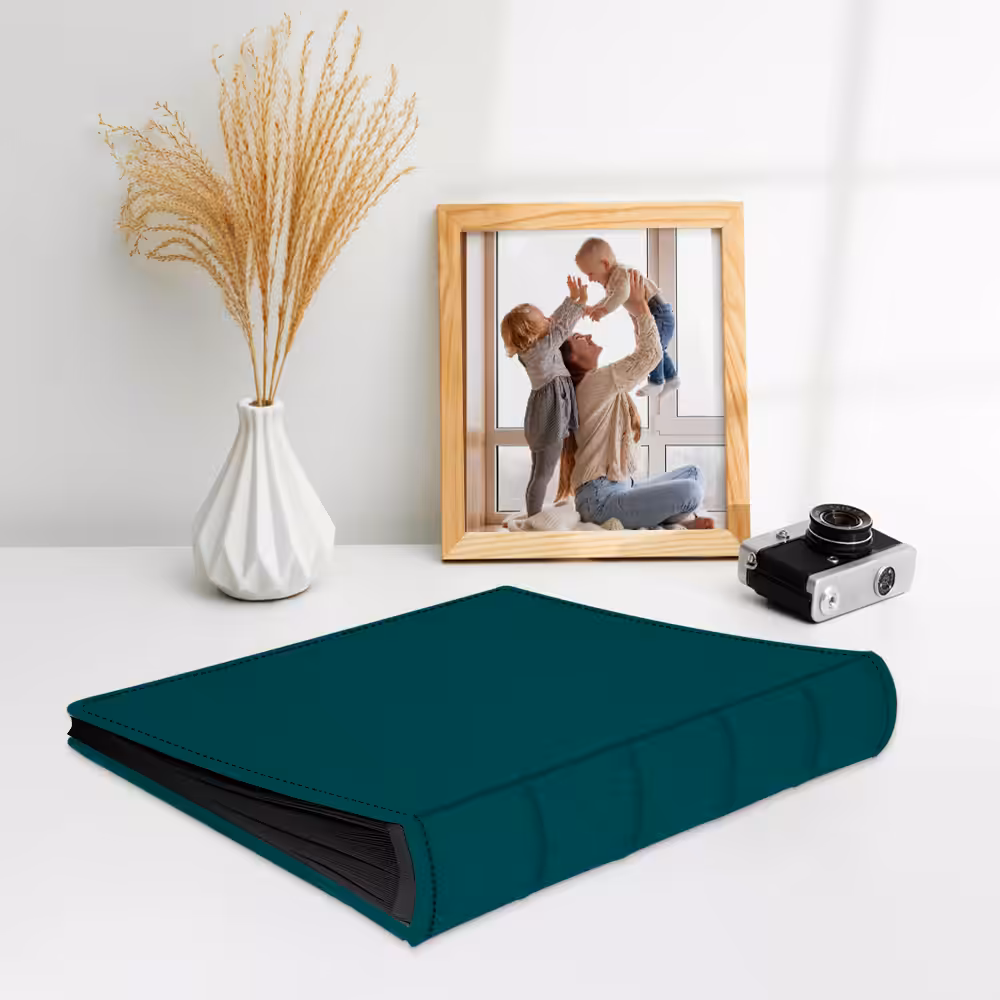 Album do wklejania zdjęć, klasyczny – skóra galanteryjna: Turkusowy, nowoczesny. Idealny na zdjęcia w popularnych formatach 10×15, 15×21 oraz wiele więcej np. Instax i fotobudki.