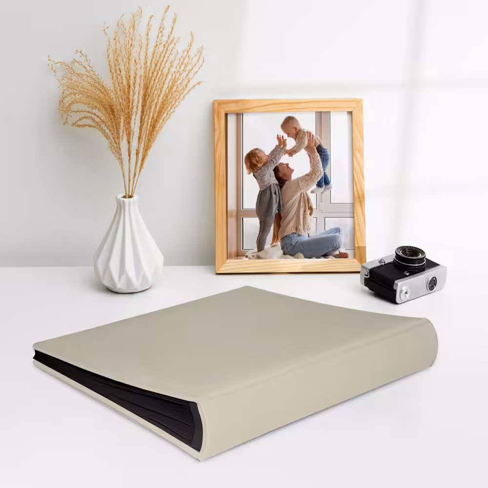 Album do wklejania zdjęć, klasyczny – Aksamit: kremowy. Idealny na zdjęcia w popularnych formatach 10×15, 15×21 oraz wiele więcej np. Instax i fotobudki.