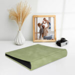 Album do wklejania zdjęć, klasyczny – Aksamit: oliwkowa zieleń. Idealny na zdjęcia w popularnych formatach 10×15, 15×21 oraz wiele więcej np. Instax i fotobudki.