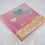 Album na zdjęcia wklejane, formatu 25×25/48 stron. Kartki koloru kremowego z naklejonym pergaminem chroniącym zdjęcia przed uszkodzeniem, z pierwszą stroną opisową dotycząca pierwszych chwil z życia dziecka. Okładka drukowana ,laminowana widoczna na zdjęciu. (Wyprzedaż)