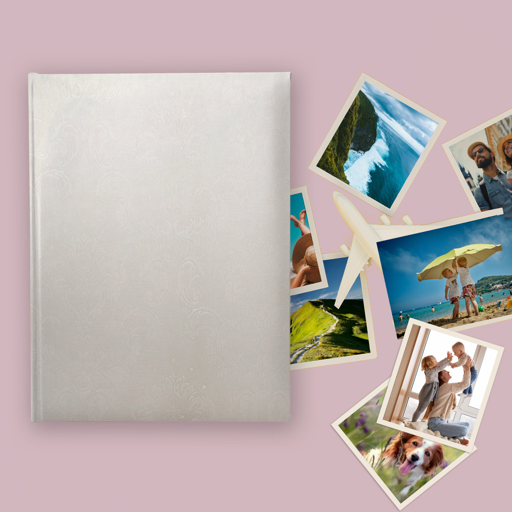 Album na zdjęcia wsuwane, okładzina introligatorska – kremowa z tłoczeniem. Idealny na zdjęcia w popularnych formatach 10×15, 15×21 itd.