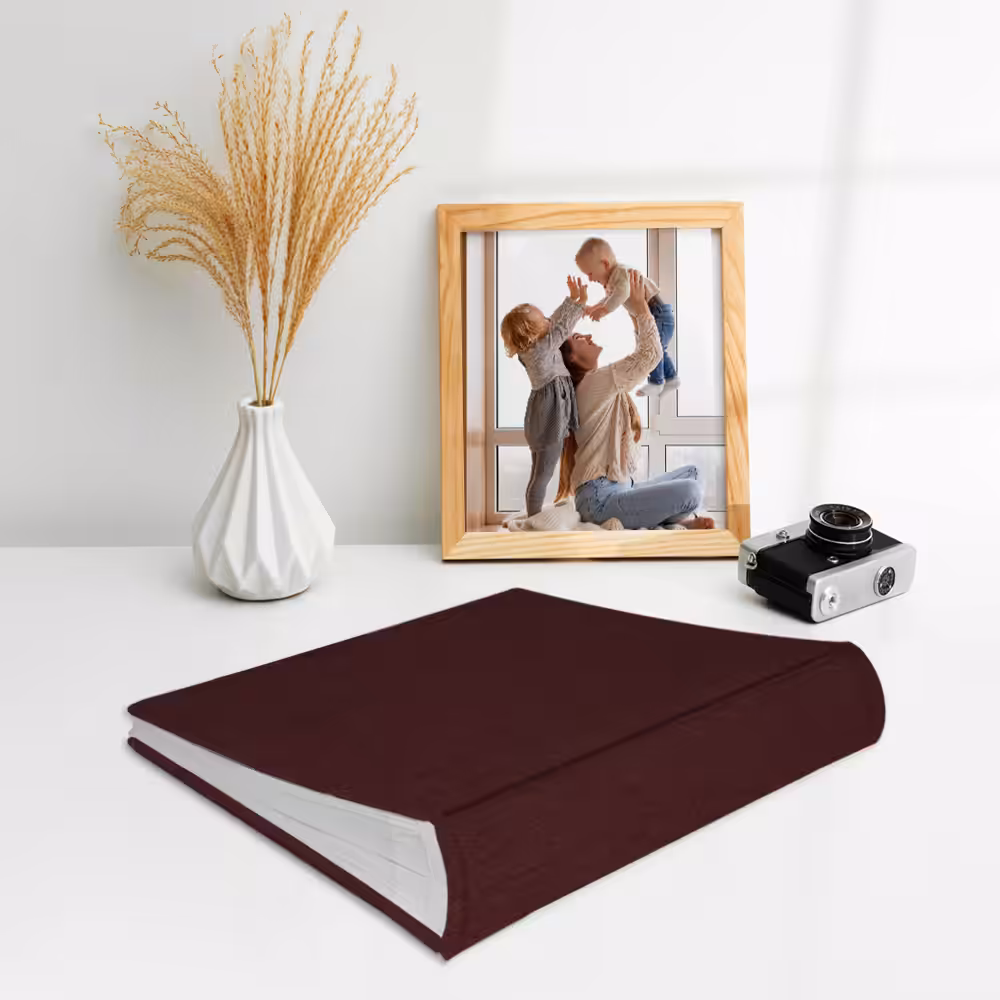 Album na zdjęcia wsuwane brązowy z elegancką, płócienną oprawą. Idealny na zdjęcia w popularnych formatach 10×15, 15×21 itd.