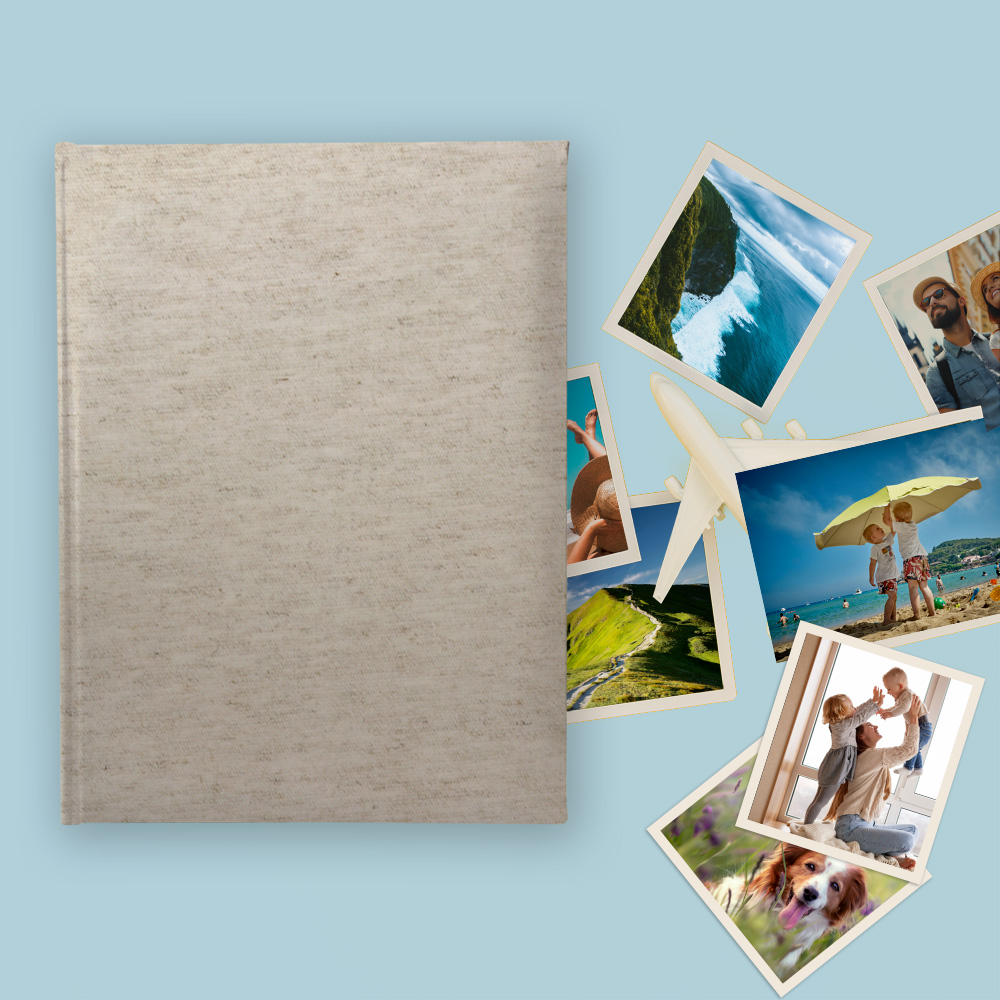 Album na zdjęcia wsuwane jasnobrązowy, płócienną oprawą. Idealny na zdjęcia w popularnych formatach 10×15, 15×21 itd.