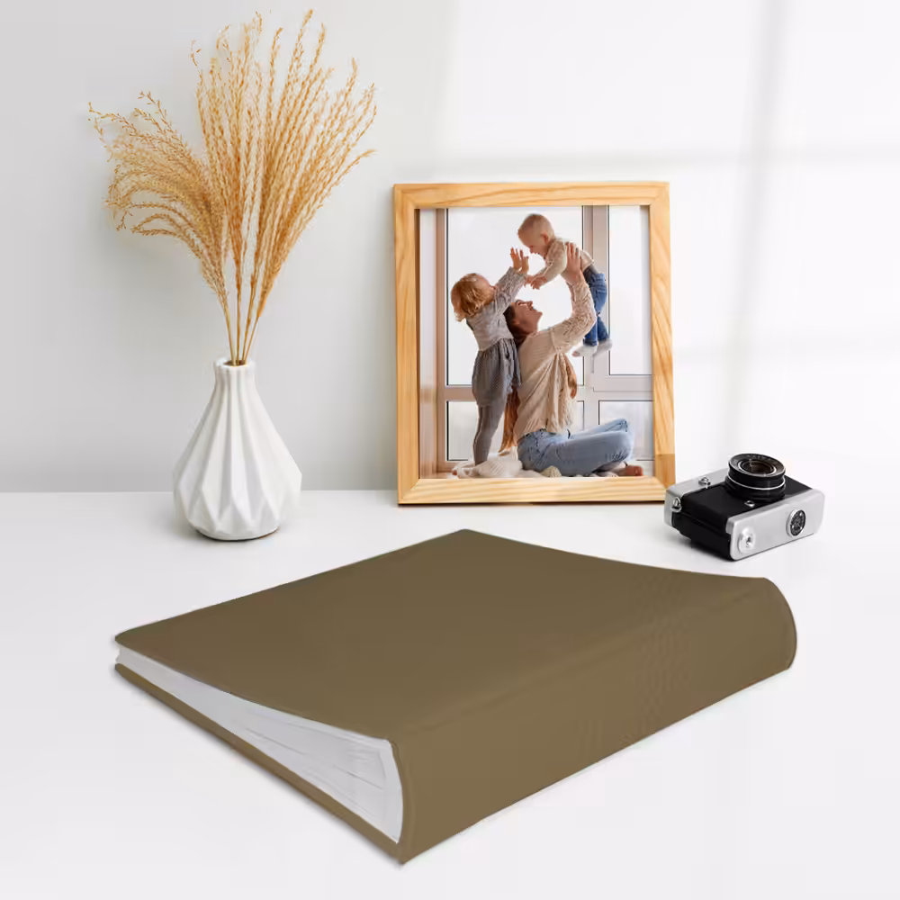 Album na zdjęcia wsuwane, skóra galanteryjna, ekoskóra – ciemny beż. Idealny na zdjęcia w popularnych formatach 10×15, 15×21 itd.