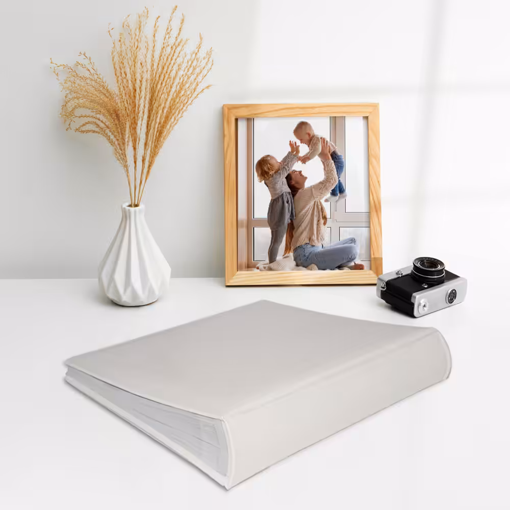 Album na zdjęcia wsuwane, skóra galanteryjna, ekoskóra – kremowa biel. Idealny na zdjęcia w popularnych formatach 10×15, 15×21 itd.