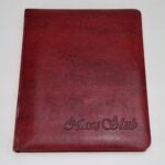 Album z naklejonymi rameczkami ze złotą lamówką na 24 zdjęcia,okładka wykonana w brązowej skóry galanteryjnej, ze złotym napisem “Nasz Ślub”. (Wyprzedaż)