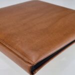 Album formatu 32×44 na zdjęcia wklejane, zawiera 60 stron koloru brązowego. Okładka wykonana z dwóch kolorystycznie dobranych do siebie brązowych skór ekologicznych z przeszyciami i ozdobnymi tłoczeniami.Możliwość wykonania indywidualnego napisu na okładce lub grafiki. (Wyprzedaż)
