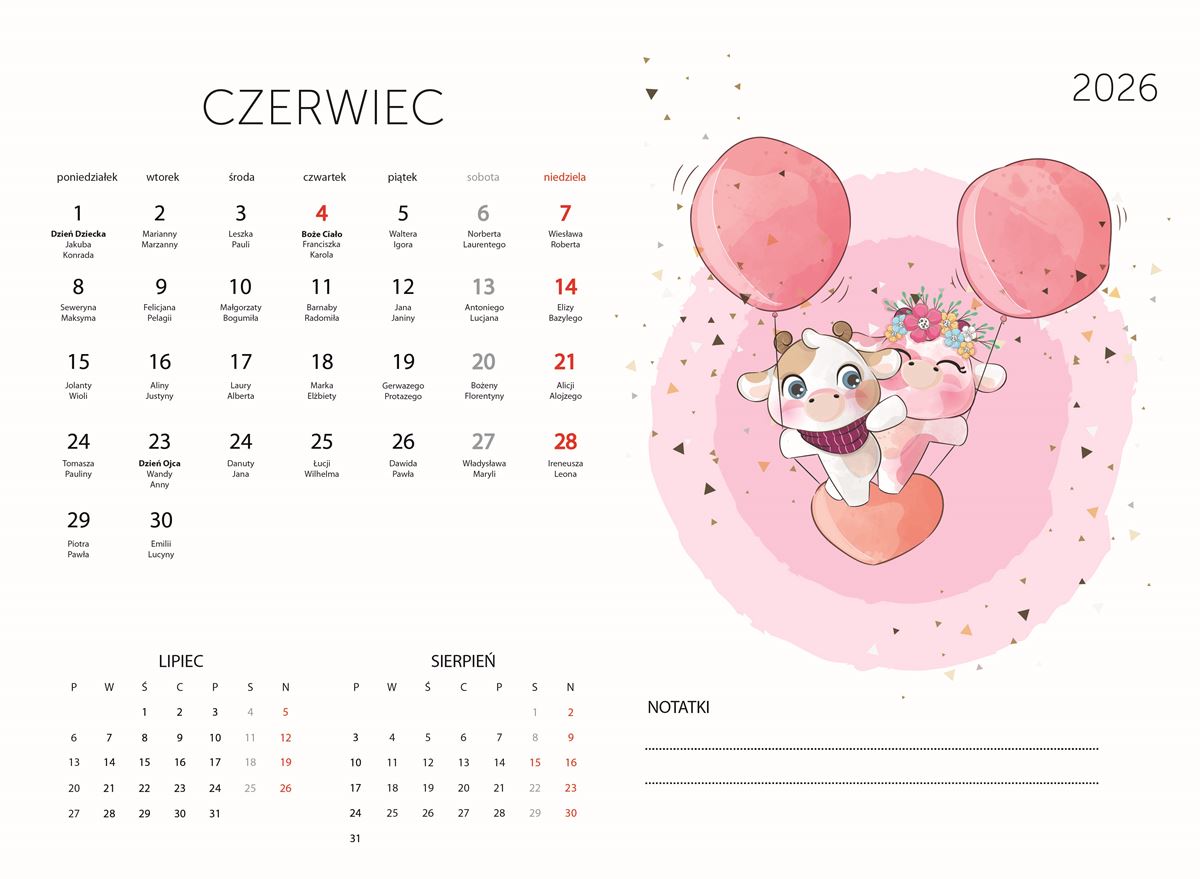 Początek Nowego Roku 2026 to idealny moment na rozpoczęcie z nowymi planami i celebrowaniem nowych początków. Nasz kalendarz pomoże Ci zorganizować wszystkie ważne daty i wydarzenia na nadchodzący rok.
