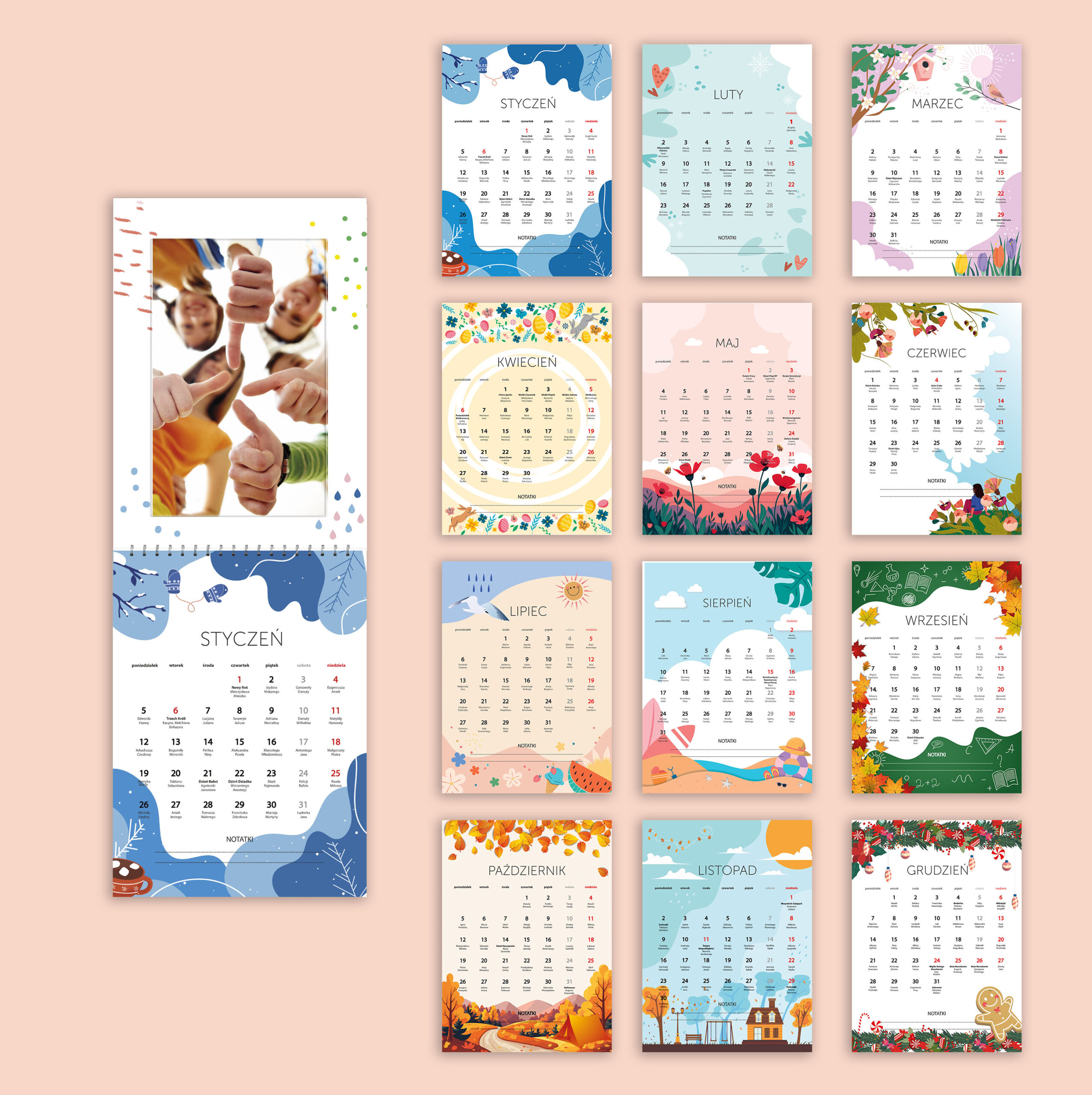 - Zabawna, dziecięca grafika towarzyszy każdemu miesiącowi, nadając kalendarzowi przyjazny i atrakcyjny charakter