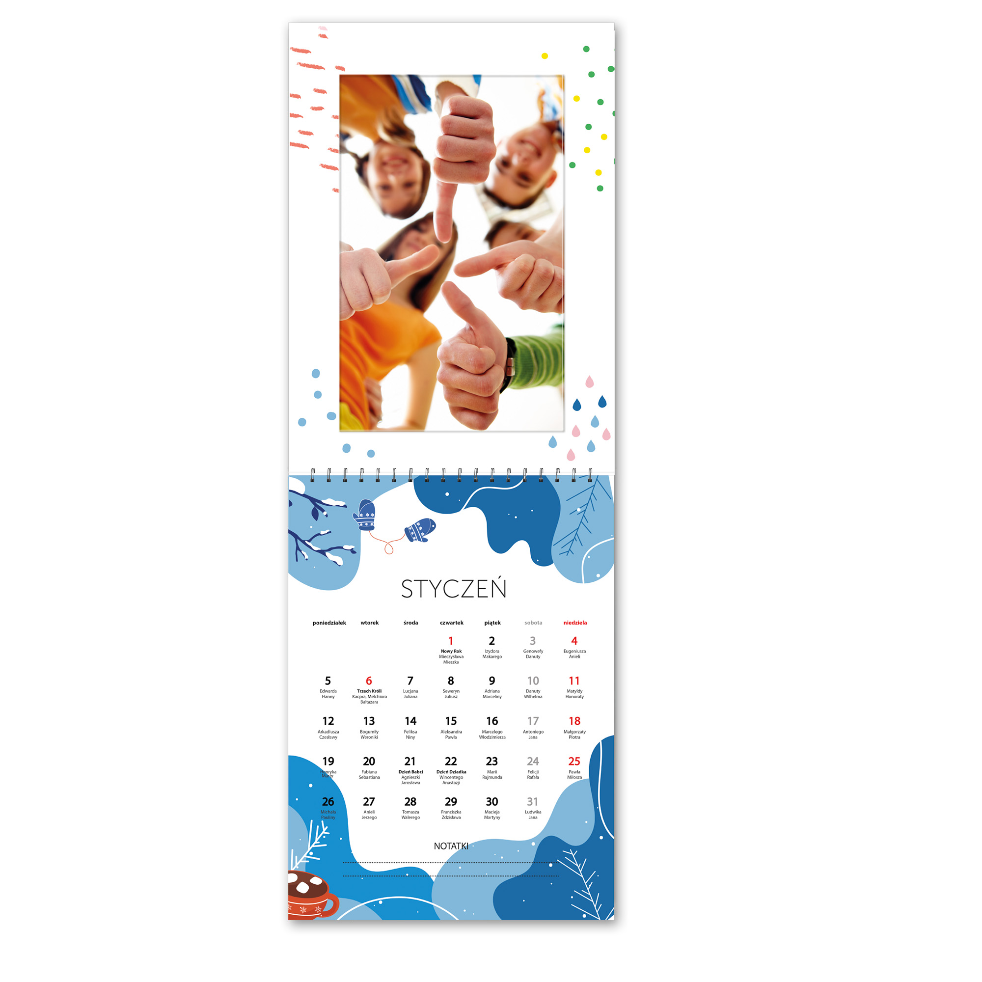 - Na pierwszej karcie znajduje się ramka na zdjęcie, co sprawia, że kalendarz staje się nie tylko narzędziem planowania, ale też osobistą pamiątką.