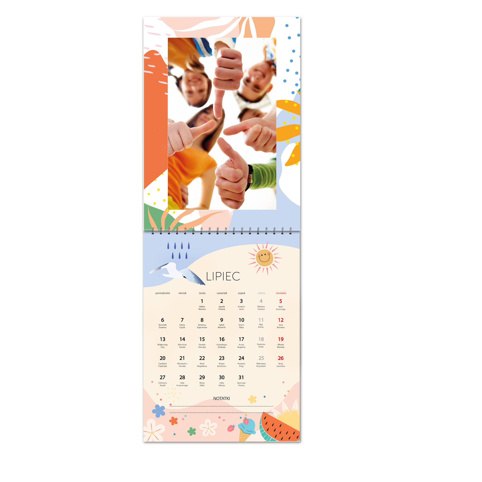 - Wysoki format sprawia, że kalendarz jest dobrze widoczny z większej odległości – idealny do wspólnego przeglądania.